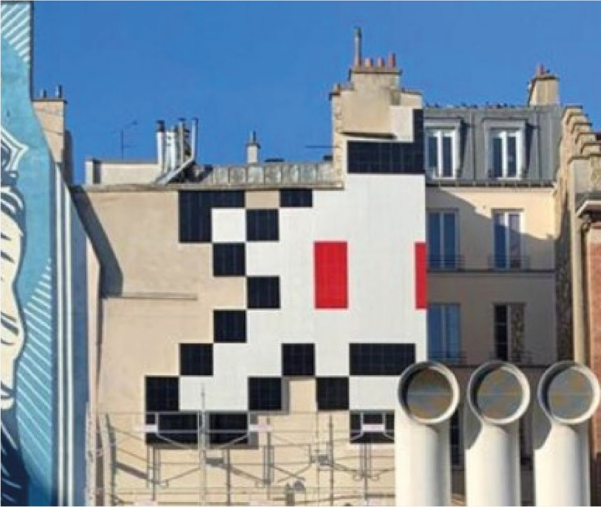 Born in 1969 in France, Invader attended the prestigious École des Beaux-Arts in Paris. After graduating from art school, he struggled to become a professional artist and break into the gallery scene. As such, his art practice – which at the time consisted of painting and ‘experimental stuff’ – was subsidised by his work building websites for small businesses. This work in the early days of the Internet sparked Invader’s interest in pixelations, as did video games: ‘Space Invaders’ (1978) and its iconic 8-bit alien characters provided inspiration for Invader’s own characteristic alien motif.